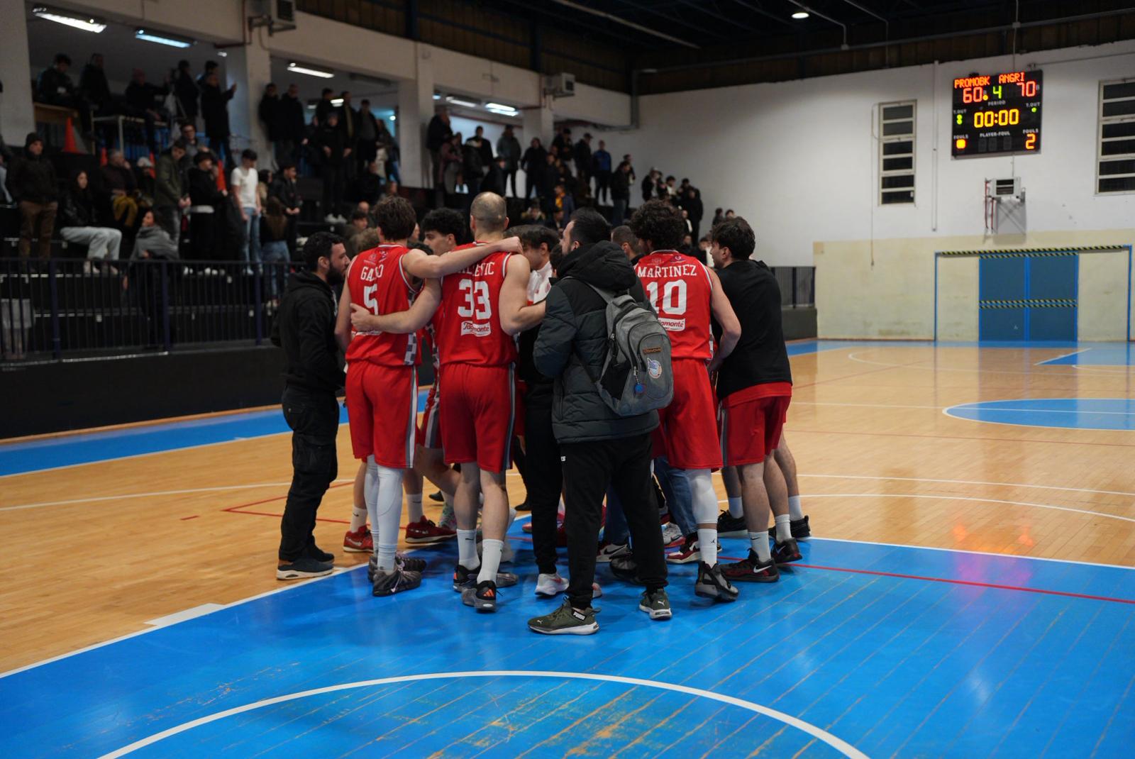 Alla ripresa delle ostilità Angri cerca di accorciare con Milojevic e Triassi (40-31). Prosegue Martinez per il 40-33. La zona sporca il gioco dei locali, che non segnano più con continuità. Proprio l’argentino punisce con la bomba del 40-36. E stavolta è Spinelli a dover chiamare time out. Milojevic sigla il -2 (40-38). Ma Ceredi rompe l’11-0 di break con il tiro del 42-38. Martinez riapre definitivamente i giochi con il siluro del 42-41. Verazzo non ci sta e annulla tutto (45-41). Stentardo rende ancor più bella la disputa con il tiro dall’angolo del 45-44. Capitan Bonanni mette a segno i liberi del primo vantaggio angrese della gara (45-46). L’inerzia è nelle mani degli ospiti, che cercano l’allungo con un’altra bomba di Stentardo (45-49). Marigliano si sblocca con la realizzazione dall’arco di Di Giuliomaria per il 48-50 conclusivo del quarto. Ceredi e Scekic riacciuffano gli ospiti per il pari 54. Il freddissimo Peluso appoggia il 54-56. Stentardo prosegue il suo grande esordio con un altro centro dai 6,75, seguito subito da Triassi per il 54-62. Verazzo tiene in piedi la Promobasket con le bombe del 60-64. Si giunge al finale in volata. Angri difende in modo efficace. In attacco Martinez segna il 60-66, con 39’’ sul cronometro. E la contesa di fatto finisce qui. Grande festa sugli spalti, con i tanti tifosi accorsi da Angri per assistere alla gara.